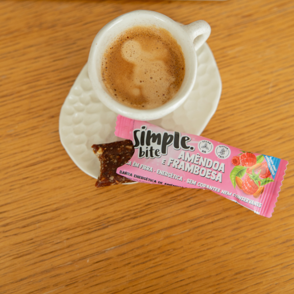 Barra energética biológica. Com o inconfundível sabor da framboesa e deliciosos pedaços de amêndoa, a Barra Energética Simple® Bite Amêndoa e Framboesa promete tornar-se o seu snack de eleição.