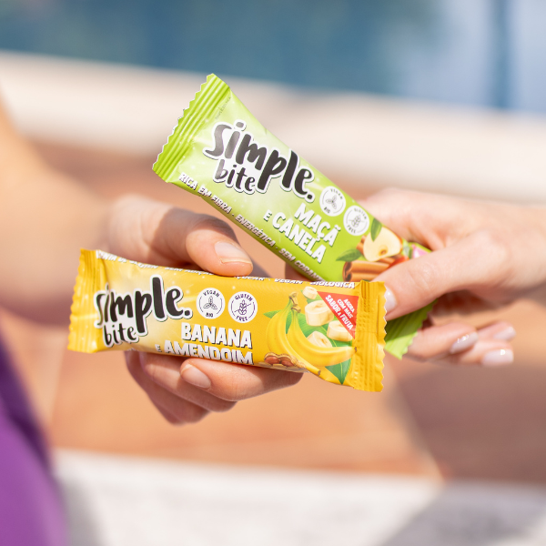 Barras Simple® Bite de Maçã são agradável mistura da frescura da maçã com o abraço quente da canela.As Barras Energéticas Simple® Bite são uma deliciosa combinação de fruta e frutos secos, com ingredientes biológicos e sem qualquer açúcar adicionado.